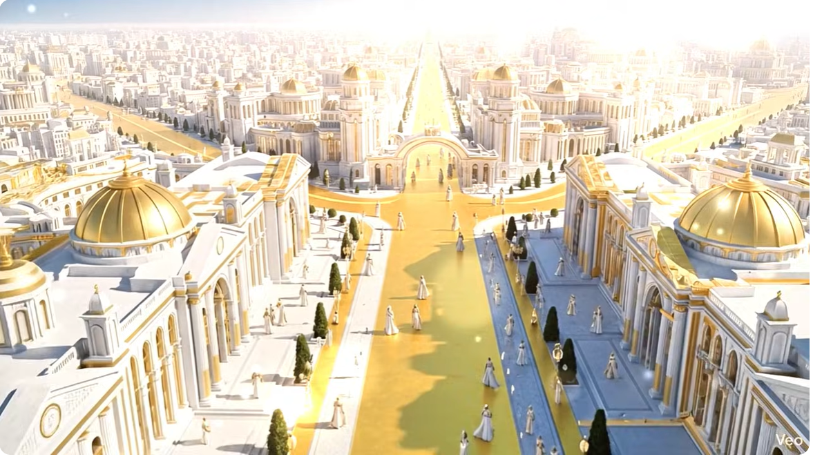 황금 거리와 아이들: 황금 거리에는 행복한 영혼들로 가득했고 수천 명의 아이가 길거리에서 뛰놀고 있었음. (378)
